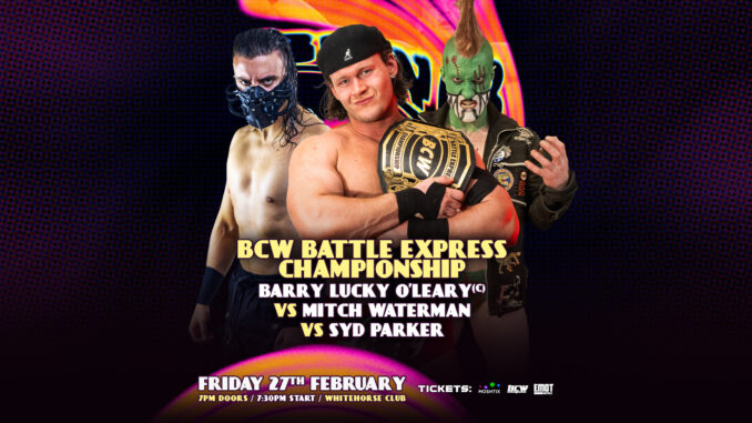 Our penultimate match announcement for BATTLE CHAMPIONSHIP WRESTLING 68 is a BCW BATTLE EXPRESS CHAMPIONSHIP MATCH as BARRY LUCKY O’LEARY defends his title against THE JURASSIC PUNK SYD PARKER and the returning MITCH WATERMAN!